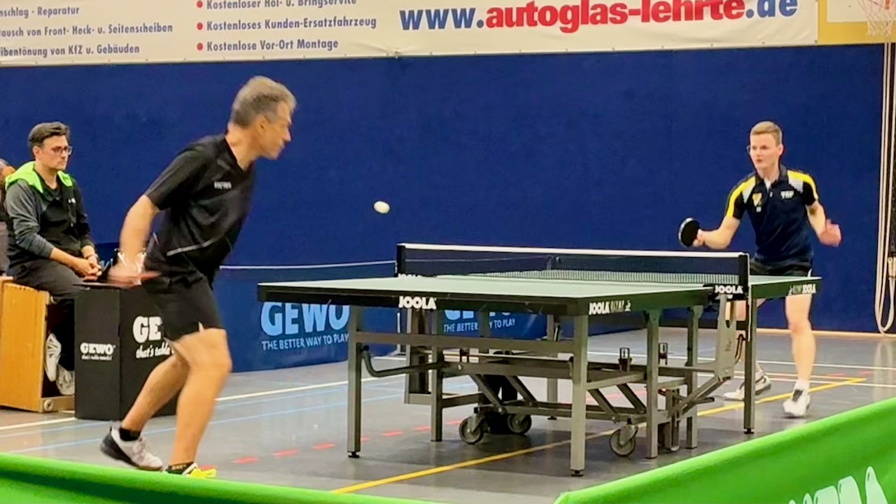 Puh! Das war mal knapp! Freitagabend mussten unsere Männer der 1. Herren beim Aufsteiger TTG Ilten / Rethmar antreten und taten sich mächtig schwer! Die Hausherren hatten den Ausfall eines Stammspielers zu verkraften, konnten das Duell aber lange Zeit auf Augenhöhe gestalten! Unsere beiden Til(l)s setzten sich erst im vierten Satz ab und brachten die Gäste mit 1:0 in Führung. Gunter und Marcus führten schon mit 2:0, um gleich zweimal knapp mit 9:11 zu verlieren. Auch der Entscheidungssatz blieb ausgeglichen, aber unsere beiden hatten mit dem 11:8 den längeren Atem. Im Auftakteinzel verlor Gunter gegen Iltens Spitzenspieler die ersten beiden Sätze, kam danach aber besser ins Spiel. Nach dem Anschluss ging es im vierten Satz in die Verlängerung, bis sein Gegner beim Stand von 12:13 einen Krampf bekam. Nachdem beide Spieler diesen Missstand beheben konnten, ging es weiter. Prompt versemmelte der Käpt’n den nächsten Punkt, womit die Hausherren auf 1:2 verkürzen konnten. Til machte es am Nachbartisch besser, auch wenn er den ersten Satz hergeben musste. Er erhöhte auf 3:1 für sein Team. Der andere Till kam zunächst überhaupt nicht mit seinem Gegner zurecht, der mit 2:0-Sätzen in Führung ging. Nach Abwehr mehrerer Matchbälle glich er aber mit dem 16:14 im vierten Satz aus. Im letzten Satz lief bei ihm leider nicht mehr viel zusammen, Ilten / Rethmar verkürzte erneut! Es blieb weiterhin eng, denn Marcus‘ klaren Dreisatzerfolg konterten die Gastgeber im Spitzenspiel: Auch Til musste sich dem heimischen Spitzenspieler in vier Sätzen beugen. Im Duell der Zweier sah es lange Zeit danach aus, als wenn die Hausherren zum Ausgleich kommen sollten. Gunter gab den ersten Satz klar her und konnte nur gerade so mit dem 12:10 ausgleichen. Den folgenden Satz holte sich wieder sein Gegner. Aber der Käpt’n stellte etwas um, und schon flutschte es: Mit zweimal 11:4 holte er sich das Match zum 5:3 für die Gäste! Die ersten beiden Sätze von Marcus verliefen noch eng, aber er wahrte seine weiße Weste und erzielte mit dem dritten Satz die endgültige Entscheidung zu Gunsten unserer Männer! Da wollte Till nicht nachstehen, der zwar den ersten Satz abgeben musste, danach aber besser ins Spiel kam. Mit drei knappen Sätzen in Folge stellte er am Ende auf 7:3 für die Hänigser, die einfach nur froh waren, dass sie das schwere Stück Arbeit hinter sich hatten! In der Tabelle wurden sie dafür belohnt: Mit 4:0 Punkten haben sie sich gleich mal an die Spitze der 2. Bezirksklasse gesetzt. Bereits am 26.09. geht es bei der TSG Ahlten III weiter. Das wird mit Sicherheit ein schwerer Gang!